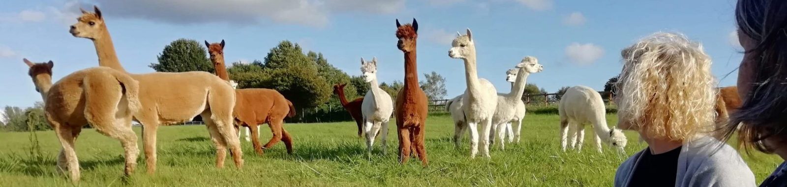 What an absolutely fabulous day we had on our visit to see the alpacas. Nicola was very conscientious and set aside time to explain about the health and safety precautions prior to us meeting the ‘girls’. Beautiful setting and relieved to see how well kept and housed the animals are. As soon as we approached their field they all came over to see us; amazed at how many there are. These animals are truly amazing, so funny, so beautiful and obviously so well loved by their owners. Each has a fantastic name to suit their individual character.